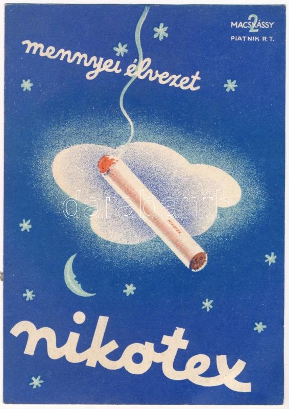 Beschreibung: Mennyei élvezet: Nikotex. Törődjön kissé magával is - szívjon Nikotexet. Piatnik Rt. kiadása, magyar cigaretta reklám / Hungarian cigarette advertisement s: Macskássy (EB)