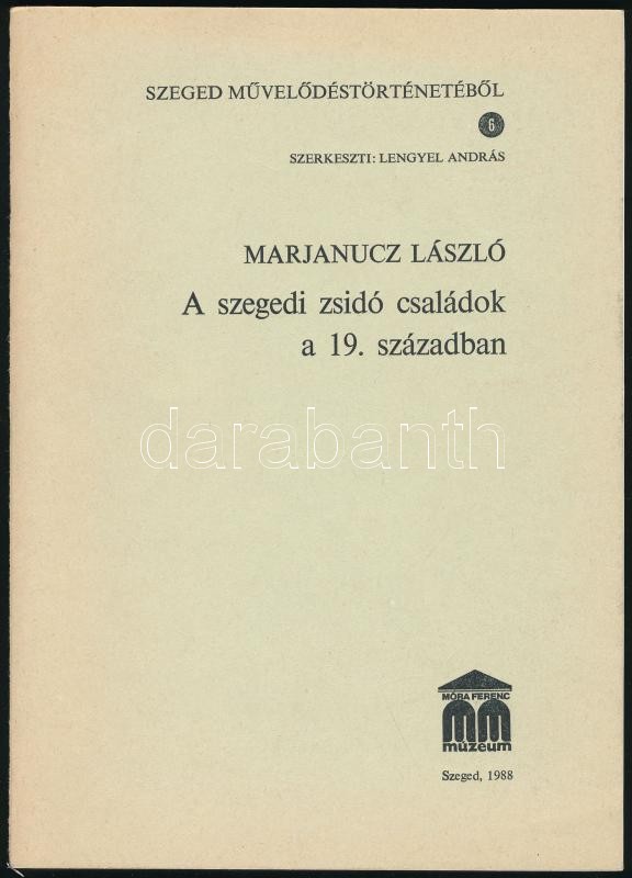 Marjanucz László: A szegedi zsidó családok a 19. században. Szeged Művelődéstörténetéből 6. Szeged, 1988, Móra Ferenc Múzeum, 52 p. Kiadói tűzött papírkötés. Megjelent 800 példányban.