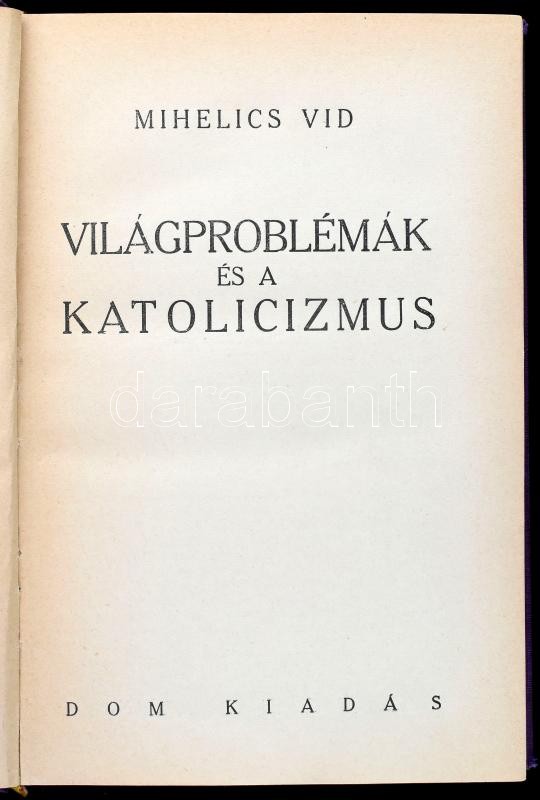 Mihelics Vid: Világproblémák és a katolicizmus. Budapest, 1933, Dom (Révai-ny.), 270+1 p. Kiadói aranyozott egészvászon-kötés, kissé sérült, kopott borítóval.