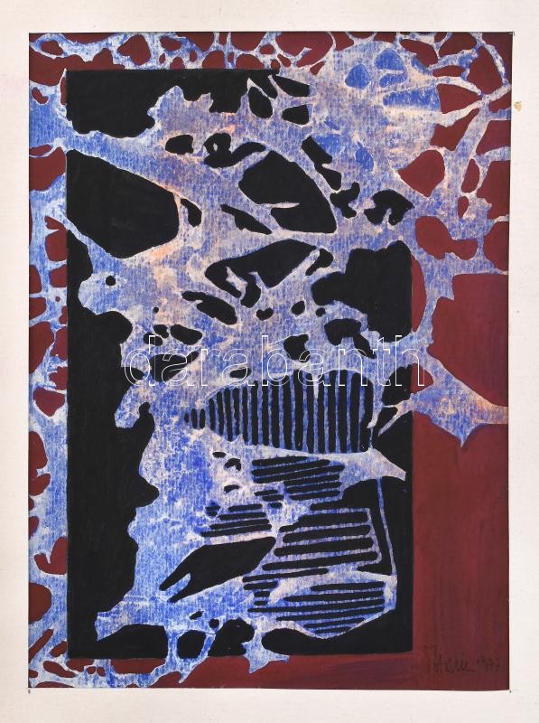Horváth Iván (1935-): Kék szövevény (cím nélkül), 1977. Akvarell, papír, jelzett, paszpartuban, 23x17 cm. Soós Imre (1921-2013) műgyűjtő, művészeti író, a Kisgrafika folyóirat szerkesztője, a Magyar Nemzeti Galéria Baráti Köre alelnökének hagyatékából.