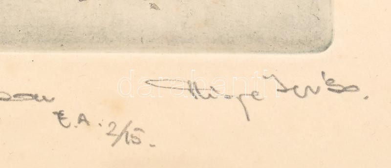 Kiss Péter (1957-): Magamban. Színes rézkarc, papír, jelzett, művészpéldány E.A. 2/15. számozással. Üvegezett fa keretben, lap szélén apró foltokkal, 40×10 cm