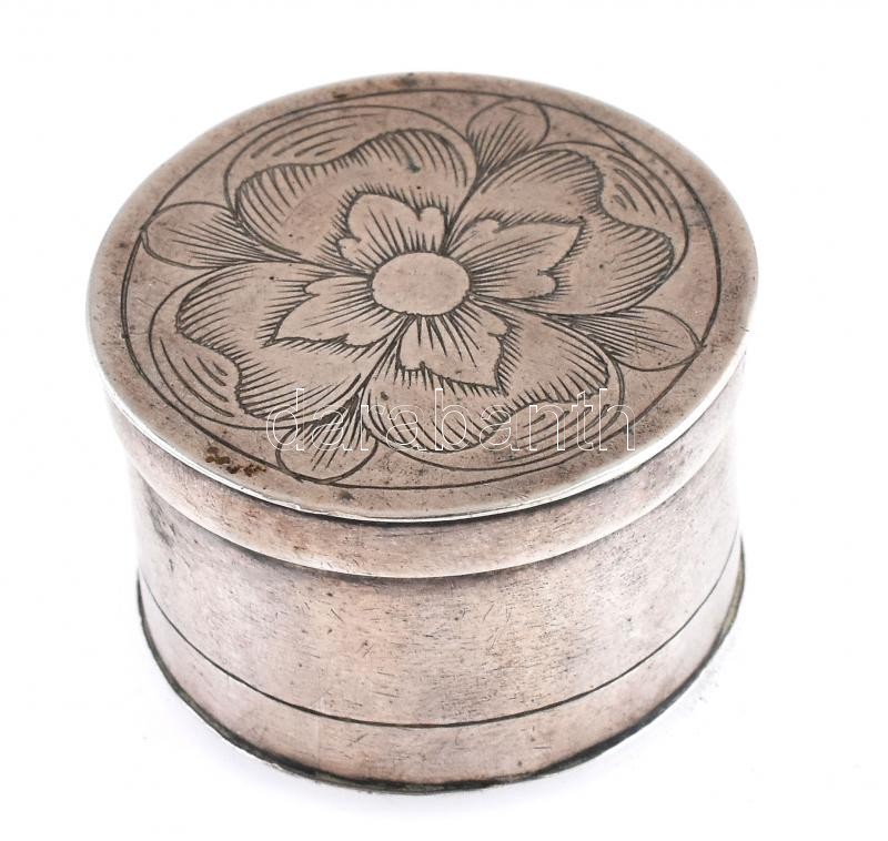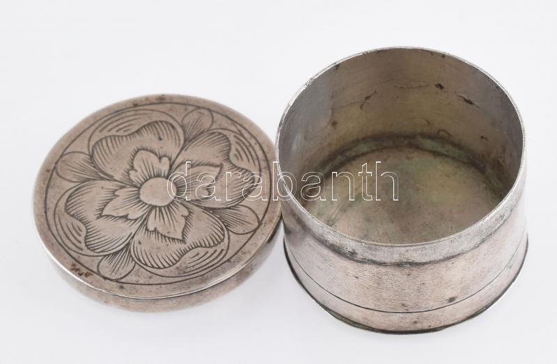Ezüst (Ag) gyógyszertartó, jelzés nélkül, d:3,5cm, nettó: 20g https://www.darabanth.com/de/414-Fernauktion/414.0/Juwelen/Juwelen~1000001/Ezust-Ag-gyogyszertarto-jelzes-nelkul-d3-5cm-netto-20g~II2585401