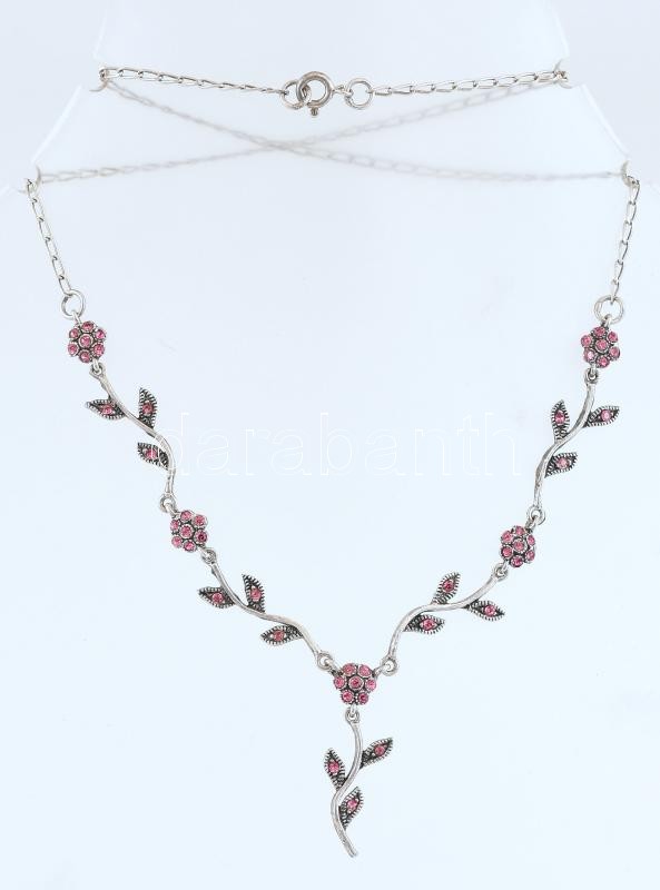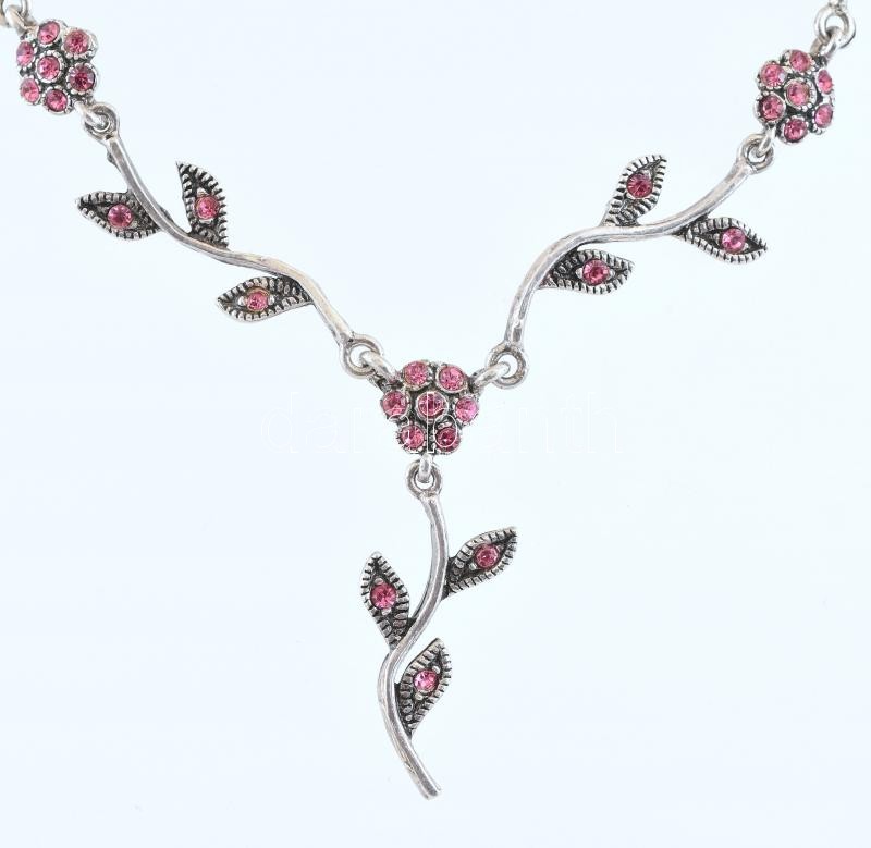 Beschreibung: Ezüst (Ag) rózsaszín köves ékszergarnitura, nyaklánc, 43cm, karkötő h:18cm
