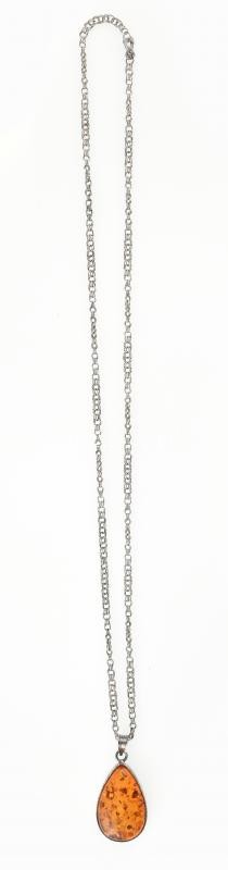 Beschreibung: Ezüst(Ag) nyaklánc, borostyán medállal, jelzett, h: 59 cm, bruttó: 16,4 g