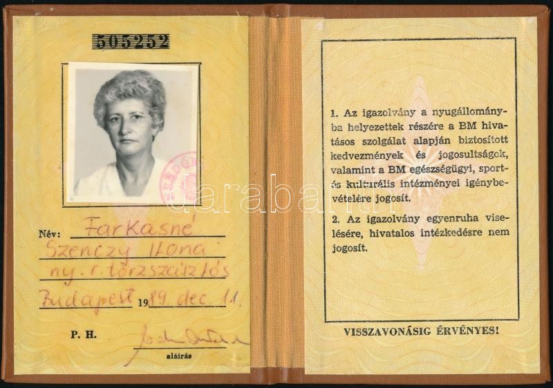 1989 Bp., BM fényképes nyugdíjas igazolvány https://www.darabanth.com/de/414-Fernauktion/414.0/Kunst-Dokumente-andere-Sammelgebiete/Dokument~500018/1989-Bp-BM-fenykepes-nyugdijas-igazolvany~II2592744