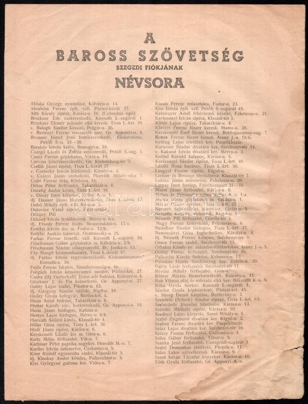 1919 A Baross-Szövetség névsora, foltos, szakadásokkal, 7p https://www.darabanth.com/de/414-Fernauktion/414.0/Kunst-Dokumente-andere-Sammelgebiete/Drucksachen~1000005/1919-A-Baross-Szovetseg-nevsora-foltos-szakadasokkal-7p~II2595624