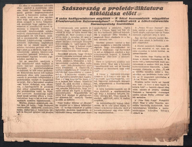 Beschreibung: 1919 Vörös Újság II. évf. 57. sz., 1919. ápr. 15., a Magyar Tanácsköztársaság idejéből, sérült, 8 p.