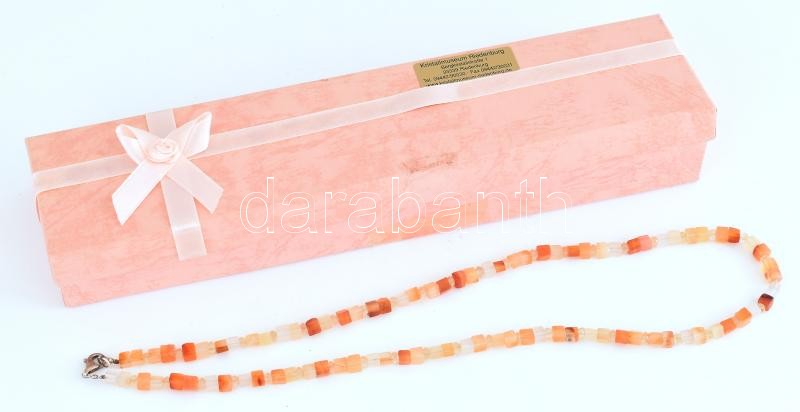Beschreibung: Karneol nyaklánc, díszdobozban, h: 50 cm