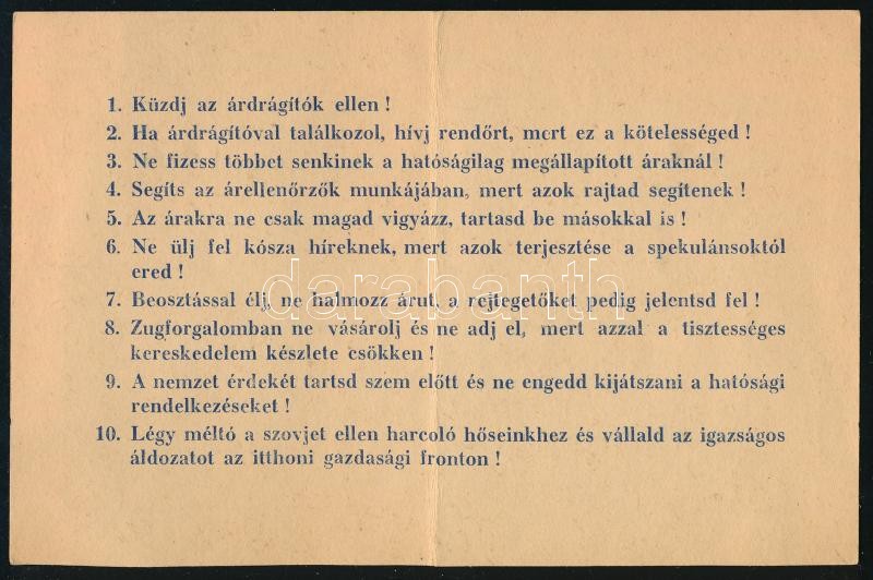 cca 1943 A háborús idők tízparancsolata - Útmutató az árdrágítás lés a... https://www.darabanth.com/de/414-Fernauktion/414.0/Kunst-Dokumente-andere-Sammelgebiete/Militaria~500028/cca-1943-A-haborus-idok-tizparancsolata-Utmutato-az-ardragitas-les-a-zugforgalom-leku~II2589731