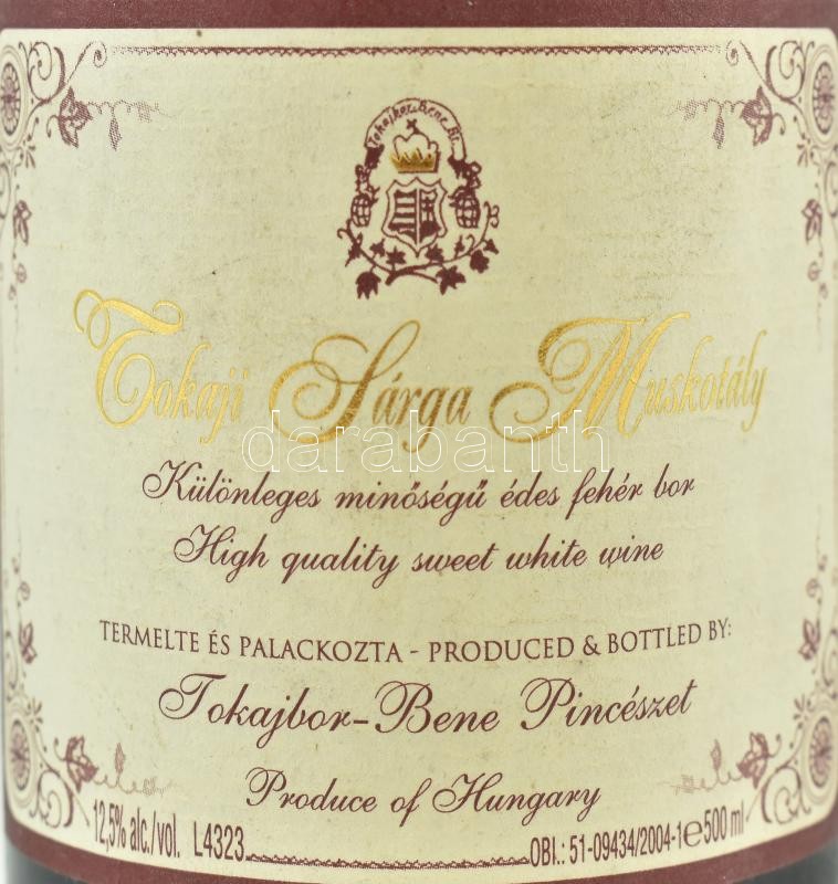 2003 Tokaji Sárga Muskotály, Tokajbor-Bene Pincészet, 500 ml https://www.darabanth.com/de/414-Fernauktion/414.0/Kunst-Dokumente-andere-Sammelgebiete/Vintage-Weine-Getranke~500015/2003-Tokaji-Sarga-Muskotaly-Tokajbor-Bene-Pinceszet-500-ml~II2555245