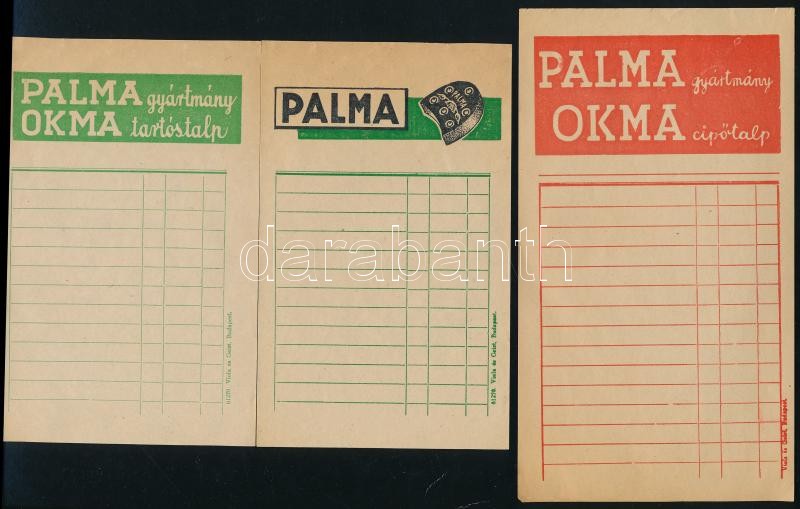Palma cipő számolócédula, 3 db https://www.darabanth.com/de/414-Fernauktion/414.0/Kunst-Dokumente-andere-Sammelgebiete/Werbungen~500022/Palma-cipo-szamolocedula-3-db~II2590822