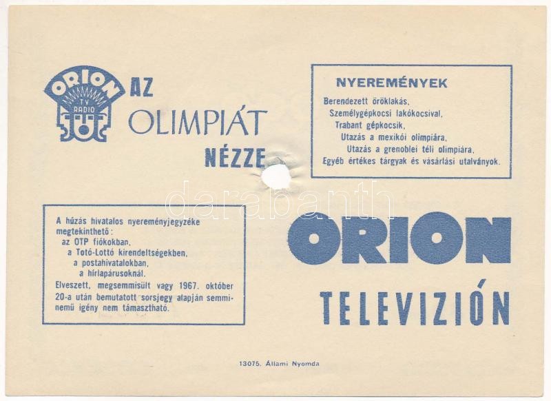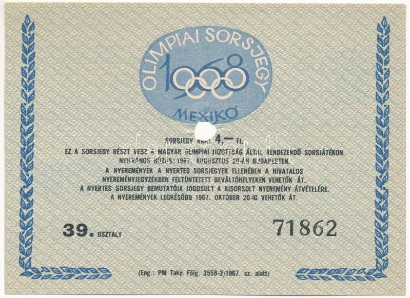 1967. "Olimpiai Sorsjegy Mexikó 1968" lyukasztással érvényte... https://www.darabanth.com/de/414-Fernauktion/414.0/Numismatik/Aktien-und-Tickets~2000004/1967-Olimpiai-Sorsjegy-Mexiko-1968-lyukasztassal-ervenytelenitve-TI-~II2589373