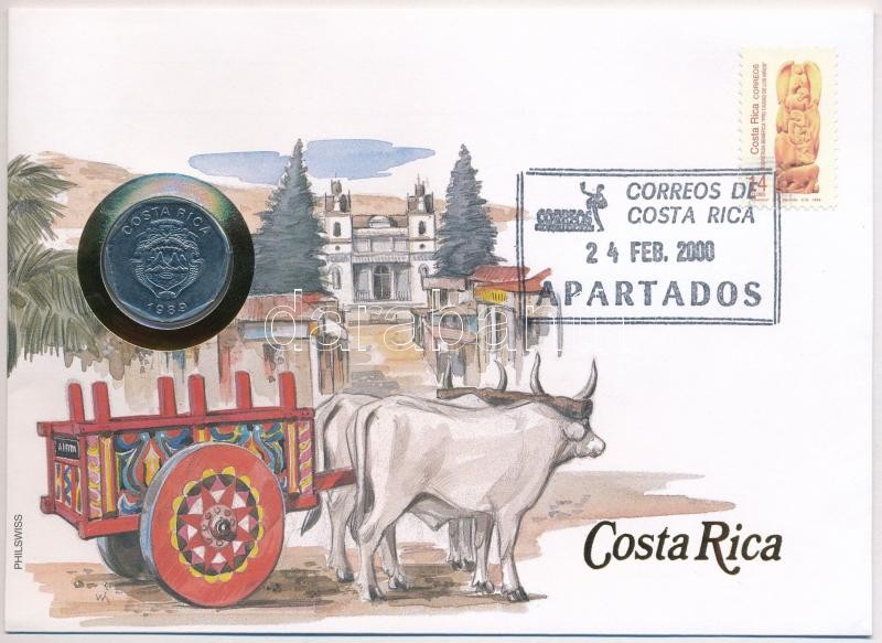 Costa Rica 1989. 5C acél felbélyegzett borítékban, bélyegzéssel, német nyelvű tájékoztatóval T:1- patina, kis karc
