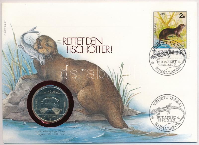 Magyarország 1985. 100Ft alpakka "Természetvédelem - Vidra" felbélyegzett, alkalmi bélyegzéssel, német nyelvű leírással T:BU Hungary 1985. 100Ft "Environmental Protection - Otter" in envelope with stamp, with German description C:BU