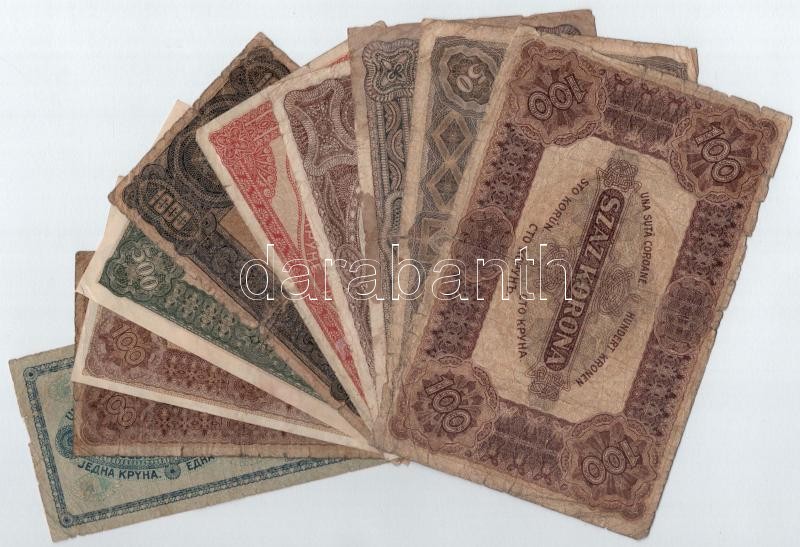 1920-1923. 1K-1000K (10x) T:III-IV https://www.darabanth.com/de/414-Fernauktion/414.0/Numismatik/Ungarische-Banknoten~2000007/1920-1923-1K-1000K-10x-TIII-IV~II2586179
