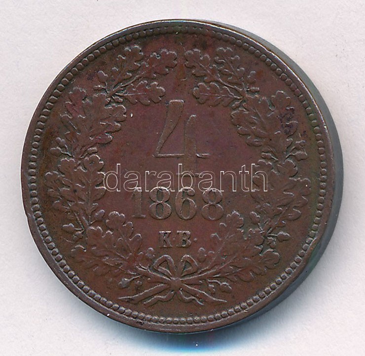 1868KB 4kr Cu T:2- ph. Adamo M7.1 https://www.darabanth.com/de/414-Fernauktion/414.0/Numismatik/Ungarische-Munzen-und-Munzen-mit-ungarischem-Munzzeichen~2000008/1868KB-4kr-Cu-T2-ph-Adamo-M71~II2586918
