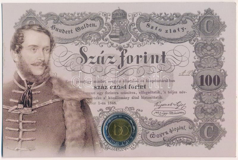 Beschreibung: 2002. 100Ft Ni-Cu-Zn "Kossuth" elsőnapi veret sorszámozott "004254" díszlapon T:1 Adamo FOEM1