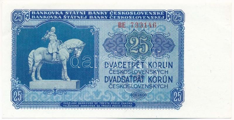 Csehszlovákia 1953. 25K "BE 733146" T:I-,II hajtatlan, sarok... https://www.darabanth.com/de/414-Fernauktion/414.0/Numismatik/Weltweit-Banknoten~2000012/Csehszlovakia-1953-25K-BE-733146-TI-II-hajtatlan-sarokhajlasok-Czechoslovakia-1953-25-Koru~II2591173