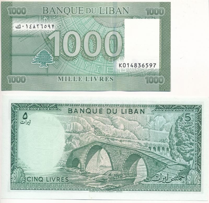Lebanon 1986. 5 Livres + 2016. 1000 Livres C:UNC