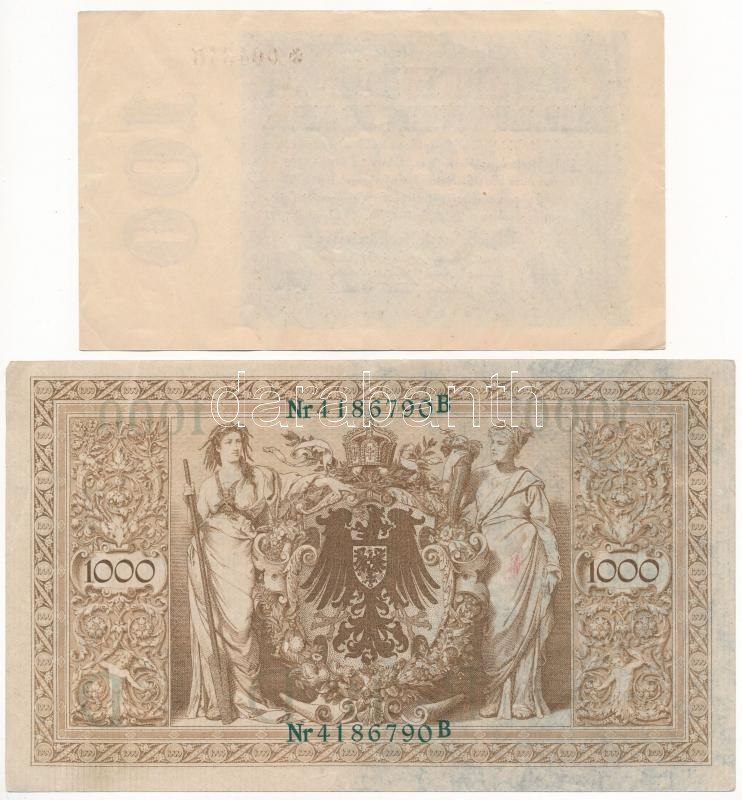Német Birodalom 1910. 1000M zöld pecsét, hétjegyű sorszámmal "4186790B" + Németország / Weimar Köztársaság 1923. 100.000.000M "*004346" T:III kis folt