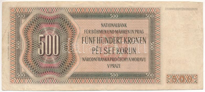 Német Harmadik Birodalom / Cseh-Morva Protektorátus 1942. 500K 2. kiadás T:III German Third Reich / Protectorate of Bohemia and Moravia 1942. 500 Korun 2nd issue C:F Krause 12