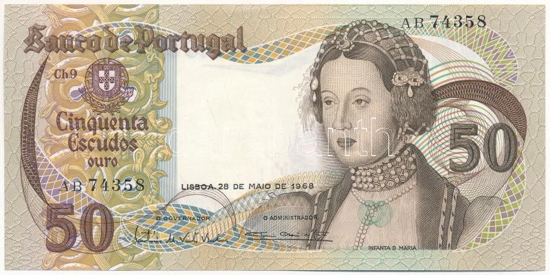 Krause 174 https://www.darabanth.com/de/414-Fernauktion/414.0/Numismatik/Weltweit-Banknoten~2000012/Portugalia-1968-50E-TI-Portugal-1968-50-Escudos-CUNC-Krause-174~II2595538
