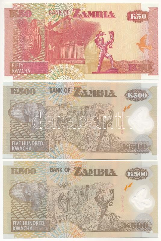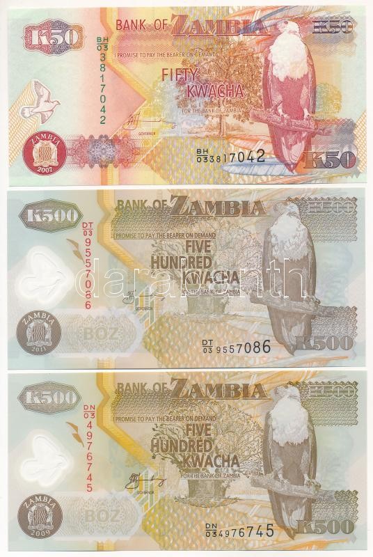 Zambia 2007. 50 Kwacha + 2009. 500 Kwacha (2x) C:UNC,AU