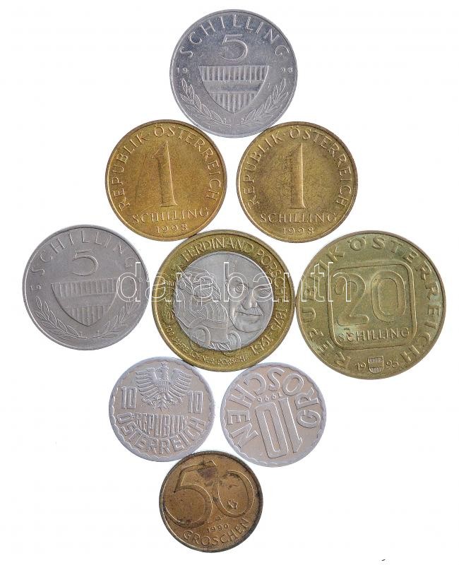 Beschreibung: Ausztria 1995. 20Sch Al-Ni-Br "Krems alapításának 1000. évfordulója" + 50Sch bimetál "Ferdinand Porsche" + 1990-1998. 10gr-5Sch (7db) T:1--2-