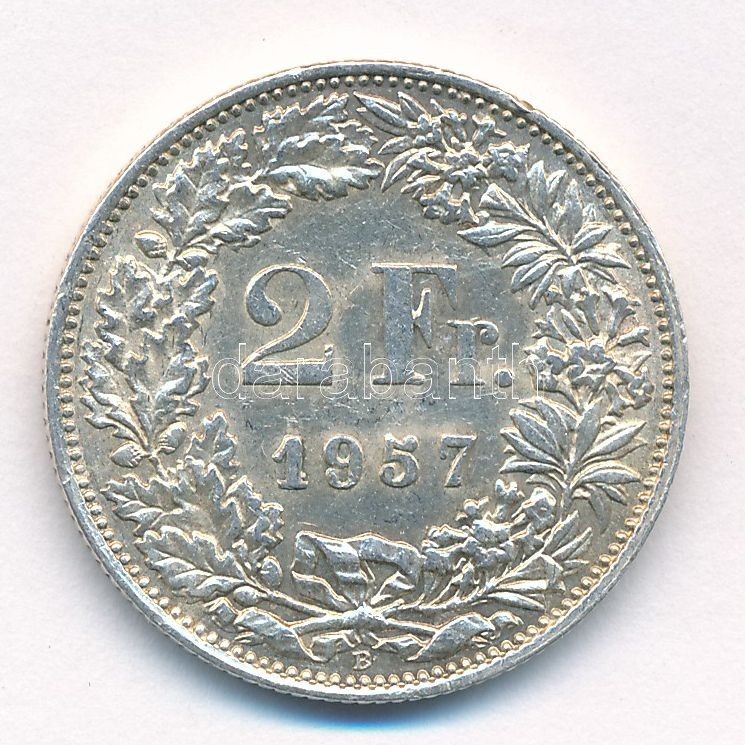 Switzerland 1957B 2 Francs Ag C:AU,X... https://www.darabanth.com/de/414-Fernauktion/414.0/Numismatik/Weltweit-Munzen~2000013/Svajc-1957B-2Fr-Ag-T1-2-patina-Switzerland-1957B-2-Francs-Ag-CAU-XF-patina-Krause-KM2321~II2570706