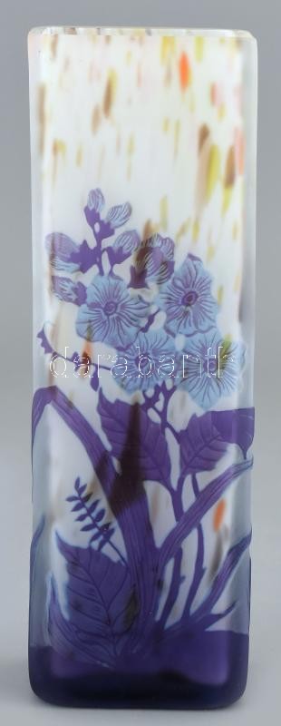 Beschreibung: Daum Nancy TIP jelzéssel: Díszváza. Fújt üveg, überfangglas, savmaratásos technikával díszített. Kopásnyomokkal. m: 20 cm