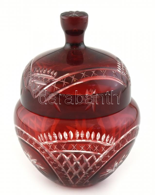 Ólomkristály bordó kétrétegű bonbonier, metszett, apró kopásnyomokkal,... https://www.darabanth.com/de/414-Fernauktion/414.0/Porzellan-Keramik-Glass/Glaser~500007/Olomkristaly-bordo-ketretegu-bonbonier-metszett-apro-kopasnyomokkal-d-12-cm~II2596794