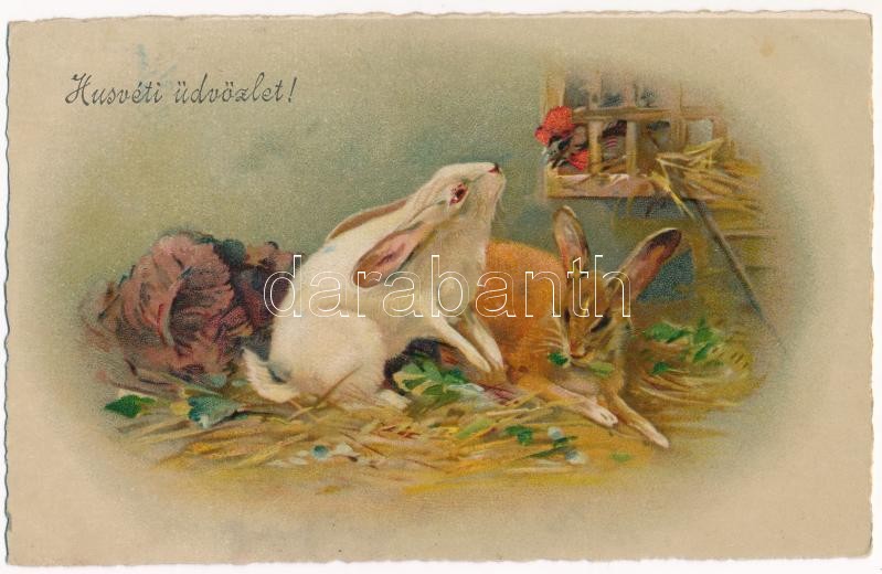 1930 Húsvéti üdvözlet nyuszikkal / Easter greeting with rabbits. G.O.M... https://www.darabanth.com/de/415-Fernauktion/415.0/Ansichtskarten/GruC39Fkarten-Feste~1000083/1930-Husveti-udvozlet-nyuszikkal-Easter-greeting-with-rabbits-GOM-2981-litho-EK~II2598811