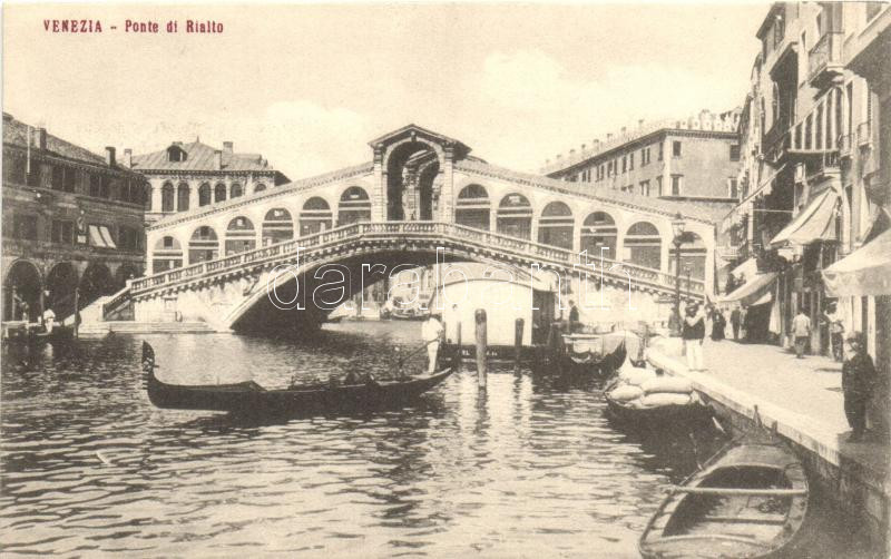 Venice, Venezia; Ponte di Rialto / bridge, canal, gondola https://www.darabanth.com/de/415-Fernauktion/415.0/Ansichtskarten/Italien~1000037/Venice-Venezia-Ponte-di-Rialto-bridge-canal-gondola~II1252376