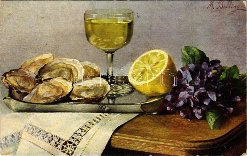 Still life art postcard with oyster and lemon. Serie 609. (12 Sujets) ... https://www.darabanth.com/de/415-Fernauktion/415.0/Ansichtskarten/Kunstlerkarten~1000072/Still-life-art-postcard-with-oyster-and-lemon-Serie-609-12-Sujets-s-M-Billing-EK~II2597228