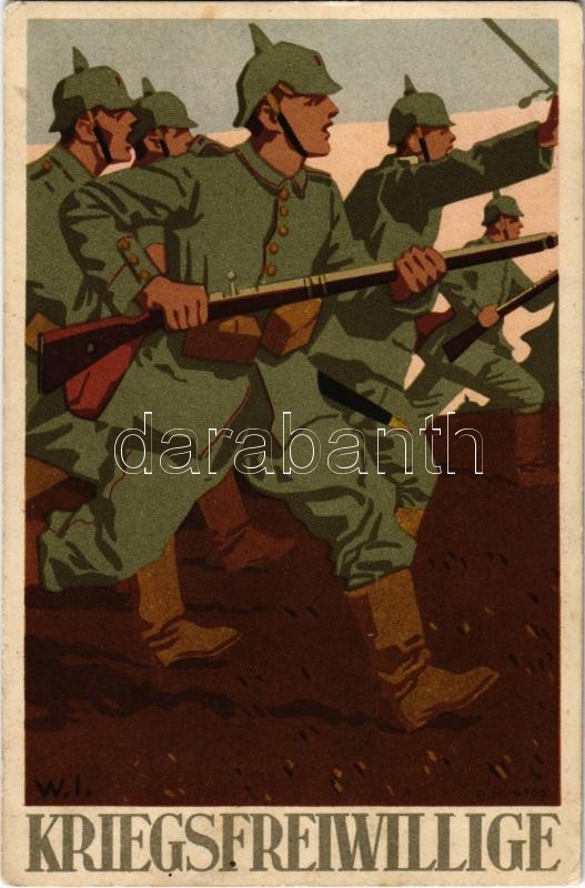 Beschreibung: 1915 Kriegsfreiwillige / WWI German military art postcard. G.M. 4700. litho s: W.I. (EK)
