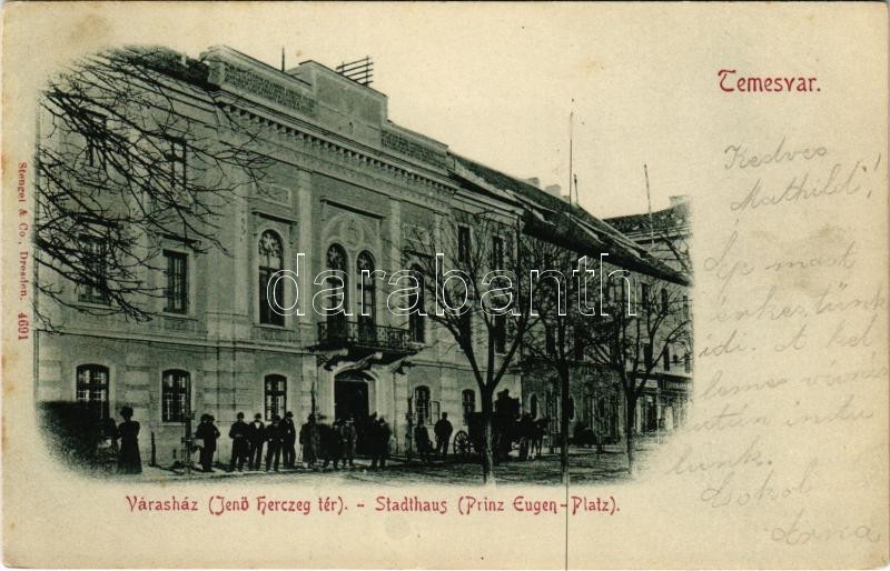 Beschreibung: 1899 (Vorläufer) Temesvár, Timisoara; Jenő herceg tér, Városháza / Stadthaus, Prinz Eugen Platz / town hall (Rb)