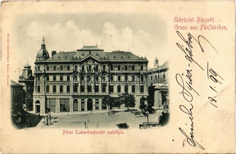 1899 Pécs, Takarékpénztár palotája https://www.darabanth.com/de/415-Fernauktion/415.0/Ansichtskarten/Ungarn~1000005/1899-Pecs-Takarekpenztar-palotaja~II1970648