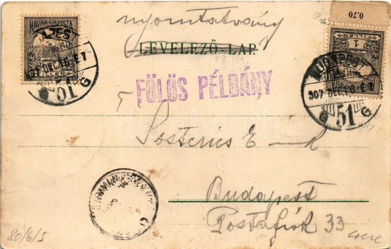 1907 Budapest V. Károly körút, villamosok, Haldek szőnyegház, Wellinger és Weiss, Strausz üzlete. Erdélyi cs. és kir. udvari fényképész felvételei után. litho (fa)