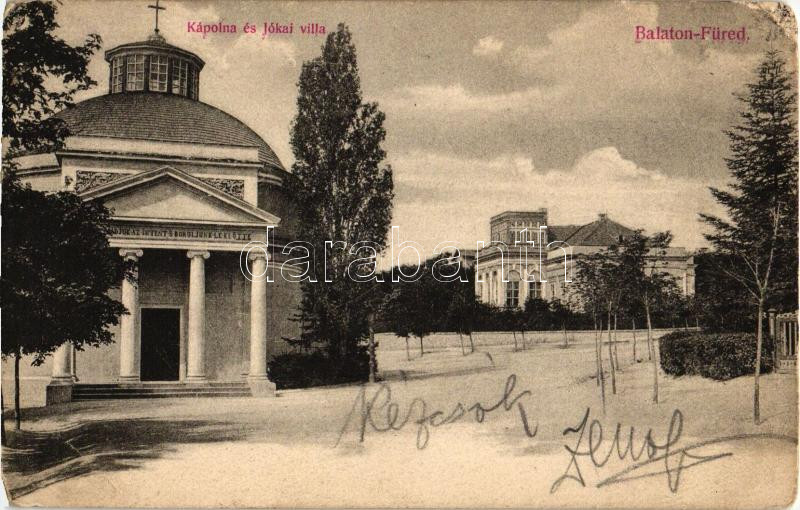 Balatonfüred, Kápolna, Jókai villa, kiadja Kruzweil Frigyes (EB) https://www.darabanth.com/de/415-Fernauktion/415.0/Ansichtskarten/Ungarn~1000005/Balatonfured-Kapolna-Jokai-villa-kiadja-Kruzweil-Frigyes-EB~II1086388
