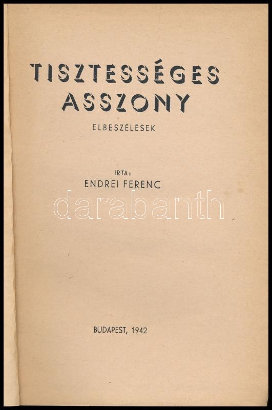 Endrei Ferenc: Tisztességes asszony. Bp., 1942. 77. számozott példány.... https://www.darabanth.com/de/415-Fernauktion/415.0/Bucher/Bucher-Andere-kuriositaten~1500025/Endrei-Ferenc-Tisztesseges-asszony-Bp-1942-77-szamozott-peldany-Kiadoi-felvaszon-kotC3~II2604657