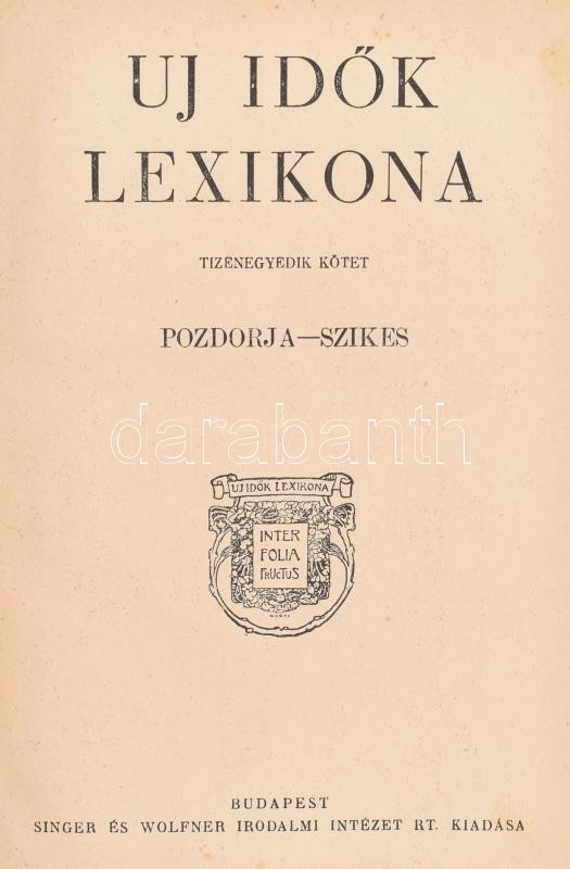 Új idők lexikona 1.-12. kötet. Budapest, 1936-1942, Signer és Wolfner Irodalmi Intézet Rt. Egységes kiadói aranyozott félvászon sorozatkötésben, számos egészoldalas és szövegközti illusztrációval, kopott borítókkal.
