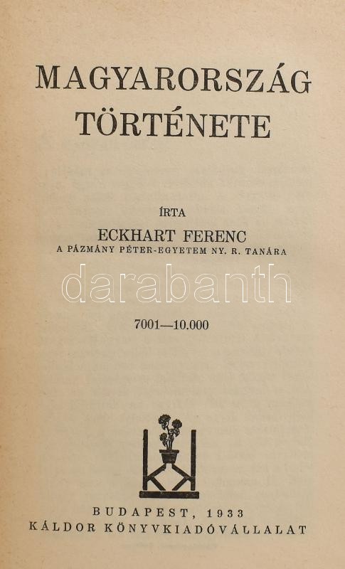 Eckhart Ferenc: Magyarország története. Bp., 1933, Káldor. Kiadói egés... https://www.darabanth.com/de/415-Fernauktion/415.0/Bucher/Bucher-Geschichte~1500009/Eckhart-Ferenc-Magyarorszag-tortenete-Bp-1933-Kaldor-Kiadoi-egeszvaszon-kotes-kisse~II2604652
