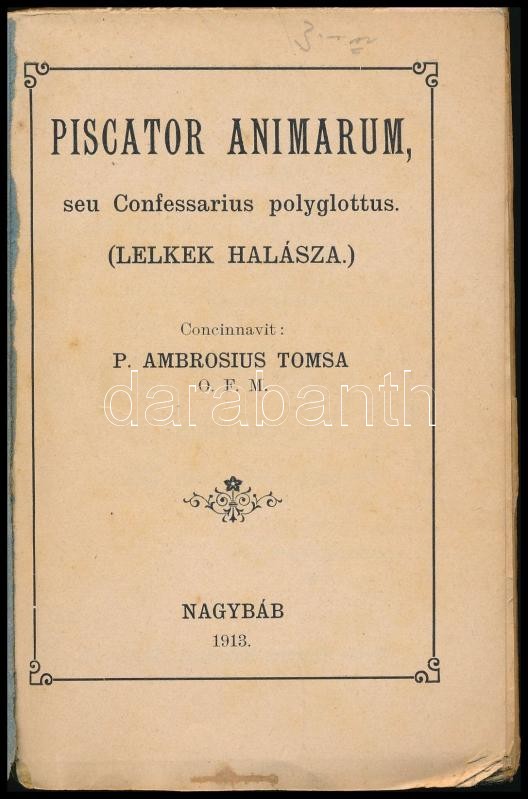 P. Ambrosio Tomsa: Piscator Animarum seu Confessarius Polyglottus in 1... https://www.darabanth.com/de/415-Fernauktion/415.0/Bucher/Bucher-Religion~1500021/P-Ambrosio-Tomsa-Piscator-Animarum-seu-Confessarius-Polyglottus-in-19-linguis-Lelkek-halaszasa~II2575908