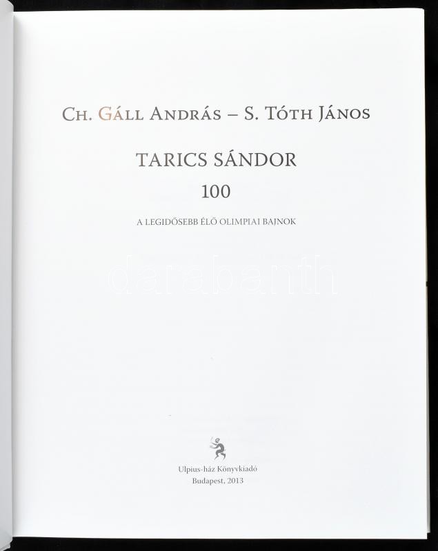 Ch. Gáll András, S. Tóth János: Tarics Sándor 100. A legidősebb élő olimpiai bajnok. Bp., 2013, Ulpius-ház. Számos fotóval illusztrálva. Kiadói kartonált papírkötés, jó állapotban.