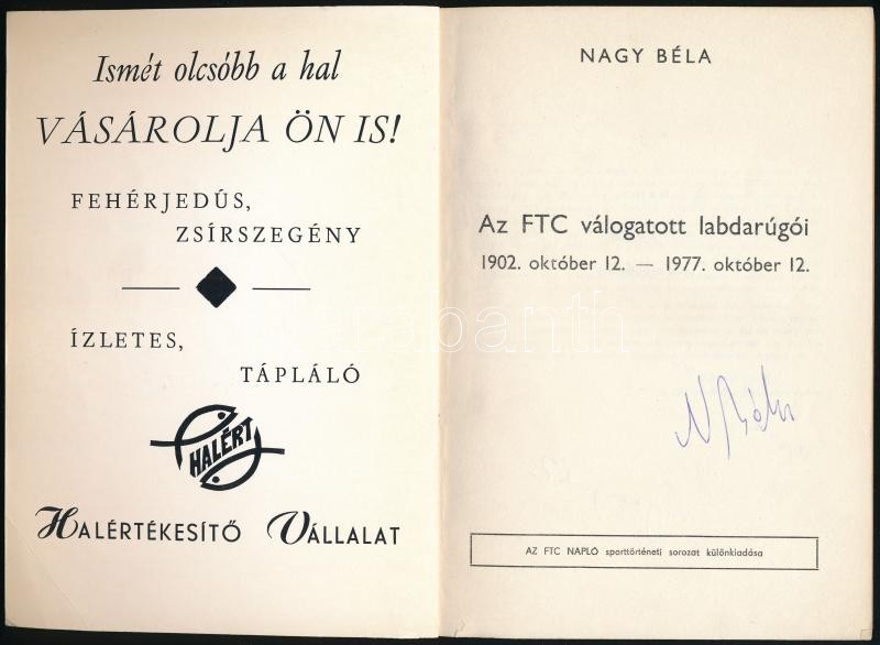 Nagy Béla: Az FTC válogatott labdarúgói 1902-1977. Dedikált! . Bp., 19... https://www.darabanth.com/de/415-Fernauktion/415.0/Bucher/Bucher-Sport-Schach-Bergsteigen~1500006/Nagy-Bela-Az-FTC-valogatott-labdarugoi-1902-1977-Dedikalt-Bp-1977-FTC-Naplo-Kiadoi-p~II2606706
