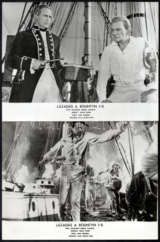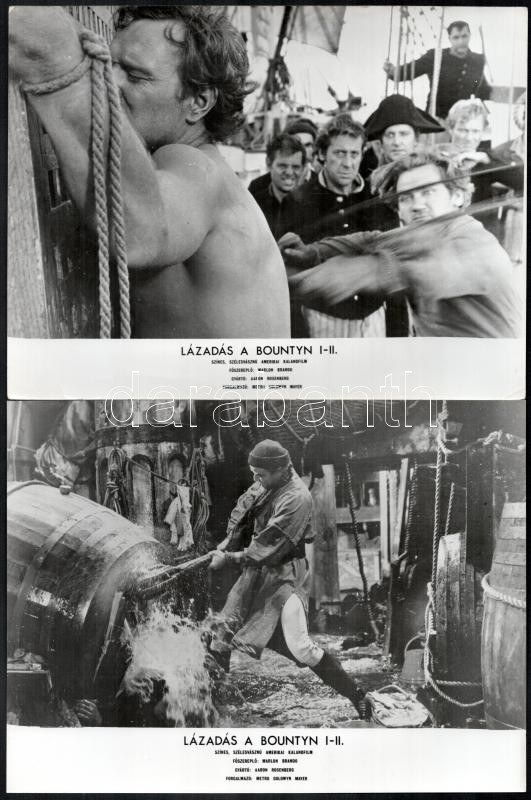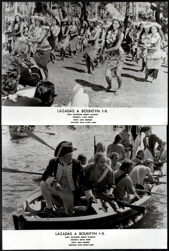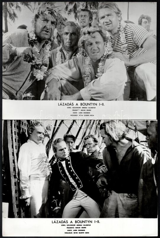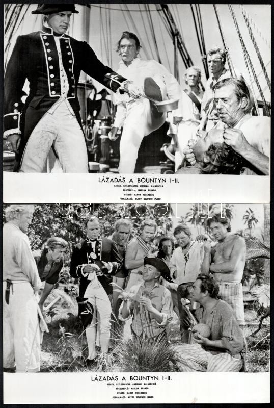 ,,Lázadás a Bountyn" című amerikai film jelenetei és szereplői (köztük Marlon Brando), 21 db vintage produkciós filmfotó, ezüstzselatinos fotópapíron, 18x24 cm