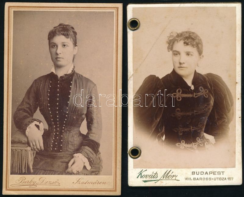 cca 1880-1900 Fiatal hölgyek portréi, 2 db keményhátú műtermi fotó (Be... https://www.darabanth.com/de/415-Fernauktion/415.0/Fotografie/Foto~500021/cca-1880-1900-Fiatal-holgyek-portrei-2-db-kemenyhatu-mutermi-foto-Berky-Dezso-Szatmar-Ko~II2597981