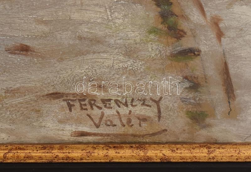 Beschreibung: Ferenczy Valér jelzéssel: Havas erdő. Olaj, karton. 60x50 cm. Dekoratív fakeretben