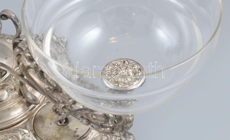 Asztali kínáló, díszes alpakka, pótolt üvegekkel, és szorítóval, apró ... https://www.darabanth.com/de/415-Fernauktion/415.0/Kunst-Dokumente-andere-Sammelgebiete/Antik~500008/Asztali-kinalo-diszes-alpakka-potolt-uvegekkel-es-szoritoval-apro-csorbakkal-50x28x33~II2602180
