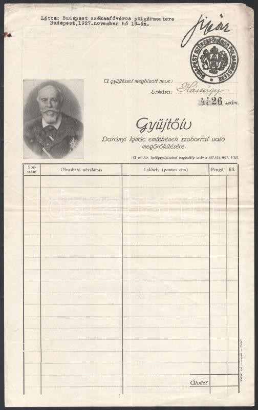1927 Bp., gyűjtőív Darányi Ignác emlékének szoborral való megörökítésé... https://www.darabanth.com/de/415-Fernauktion/415.0/Kunst-Dokumente-andere-Sammelgebiete/Dokument~500018/1927-Bp-gyujtoiv-Daranyi-Ignac-emlekenek-szoborral-valo-megorokitesere-a-Magyar-Gazd~II2608243